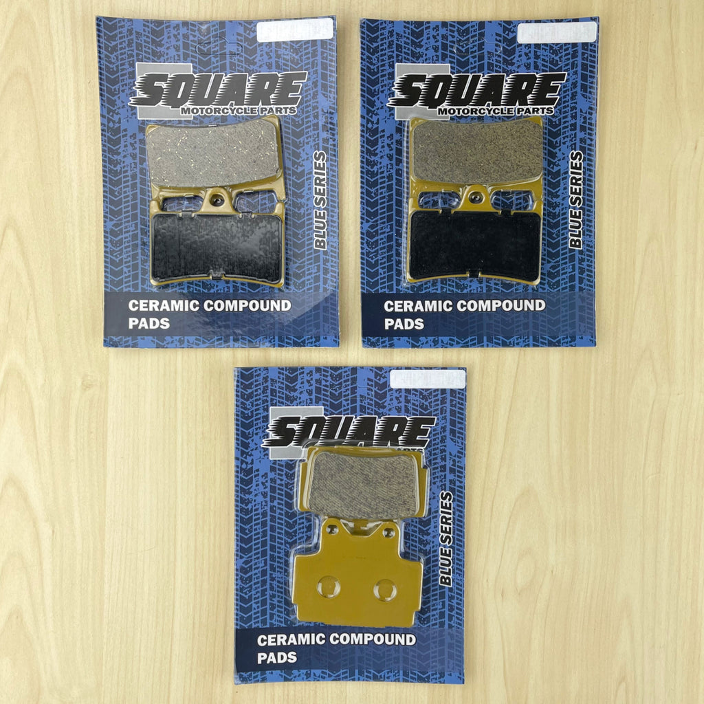 Dieser Satz Bremsbeläge der blauen Serie passt für die Vorder- und Hinterradbremse einer Yamaha TZR250 für die oben gezeigten Jahre und Modelle. Die Pads vorne links, vorne rechts und hinten sind im Lieferumfang enthalten.
