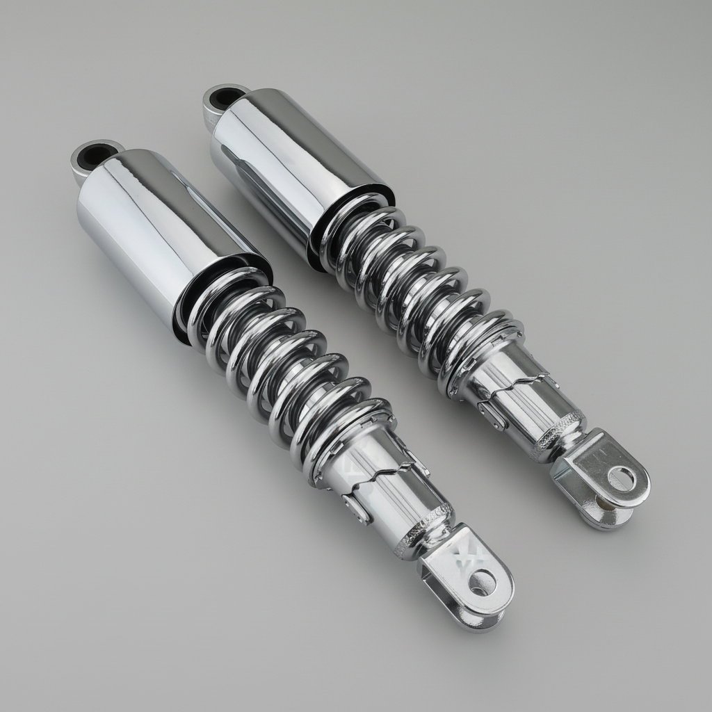 Die Stoßdämpfer sind aus Chrom, wie auf dem Bild zu sehen ist. Sie erhalten genau die Stoßdämpfer auf dem Bild.