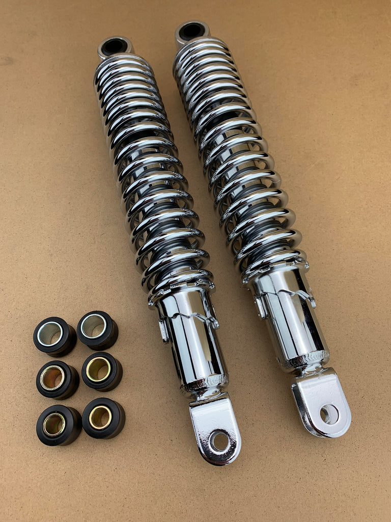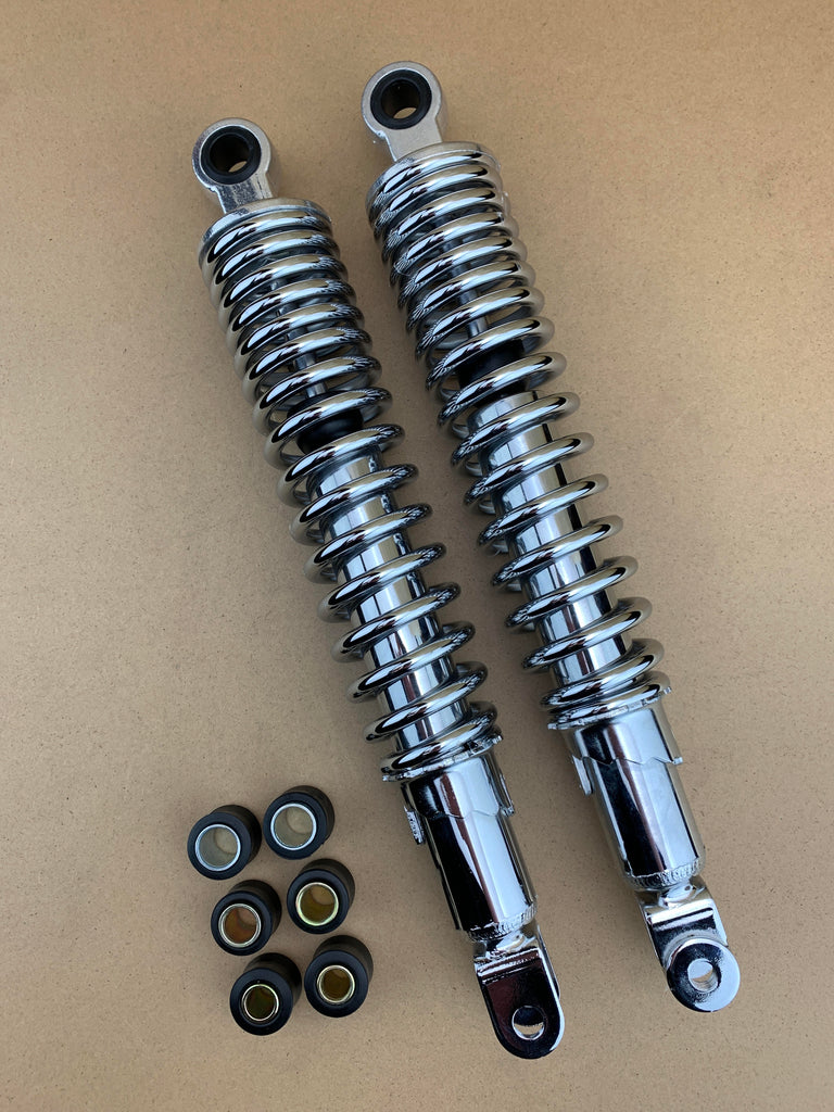 Die Stoßdämpfer sind verchromt, wie auf dem Bild zu sehen. Sie erhalten genau die Stoßdämpfer auf dem Bild.