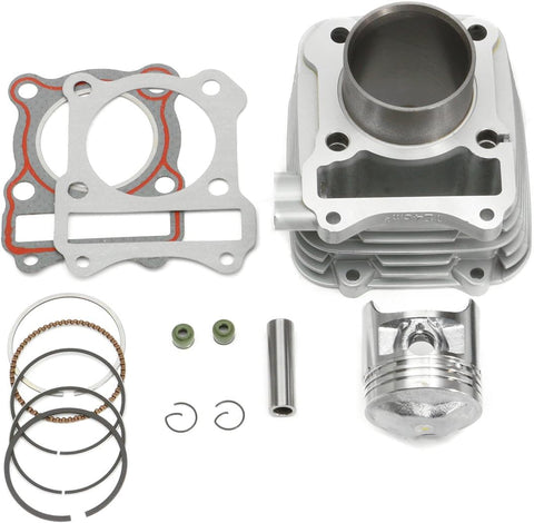 Dieser Zylindersatz wurde hergestellt, um das Original-Oberteil eines Suzuki EN125 für die oben gezeigten Jahre und Modelle zu ersetzen. Das Kit umfasst den Zylinder/das Fass/die Kanne, das Kolbenset (Kolben, Sicherungsringe und Kolbenbolzen), Dichtungen und Passstifte.