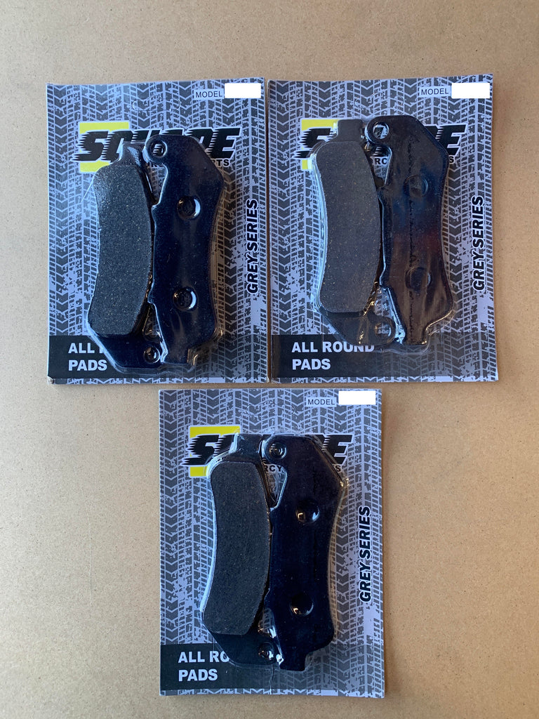 Im Set sind die Bremsbeläge für die Bremsscheibe vorne links, vorne rechts und hinten enthalten.