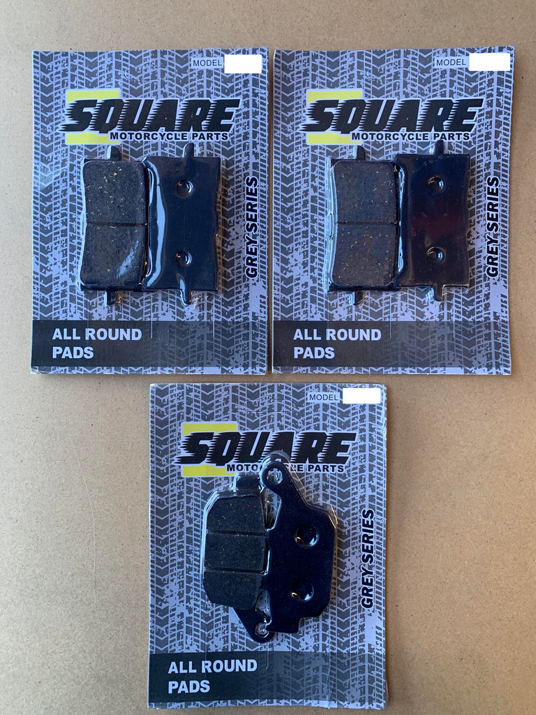 Im Set sind die Bremsbeläge vorne links, vorne rechts und hinten enthalten.