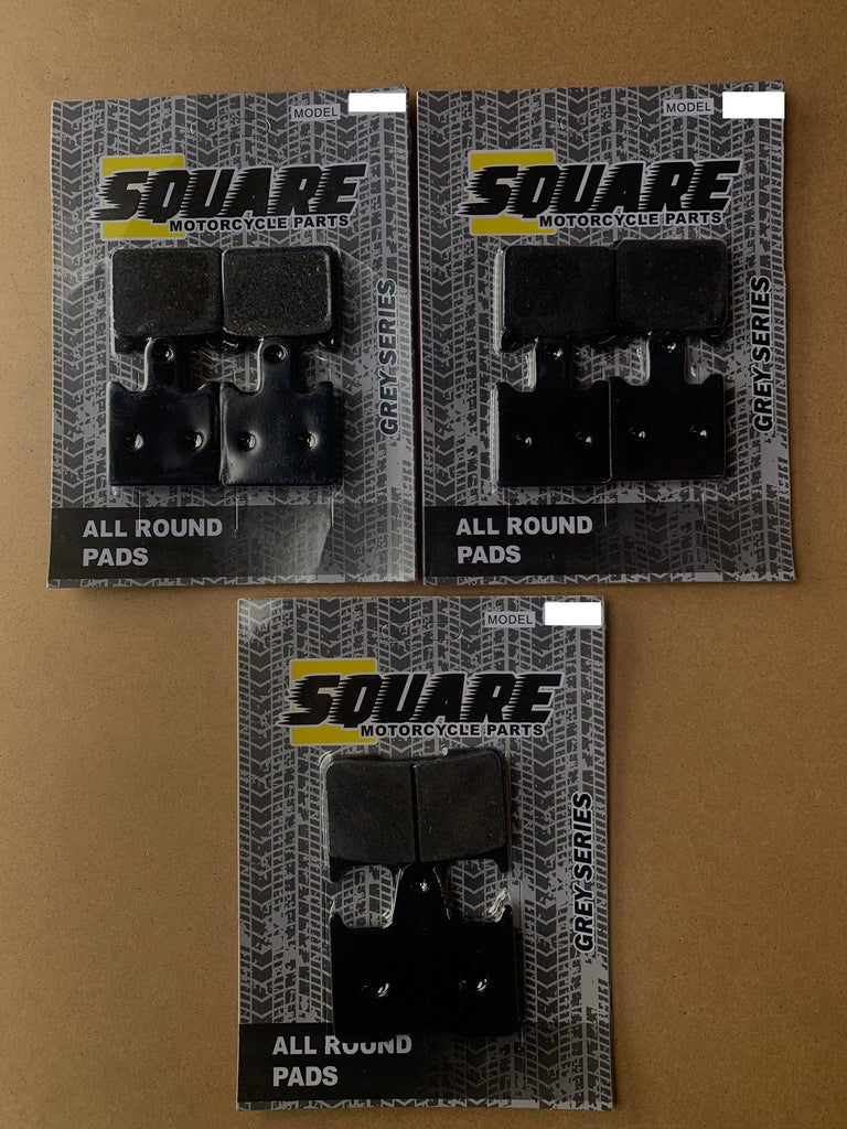 Im Set sind die Bremsbeläge für die Bremsscheibe vorne links, vorne rechts und hinten enthalten.
