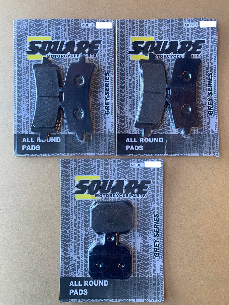 Im Set sind die Bremsbeläge für die Bremsscheibe vorne links, vorne rechts und hinten enthalten.