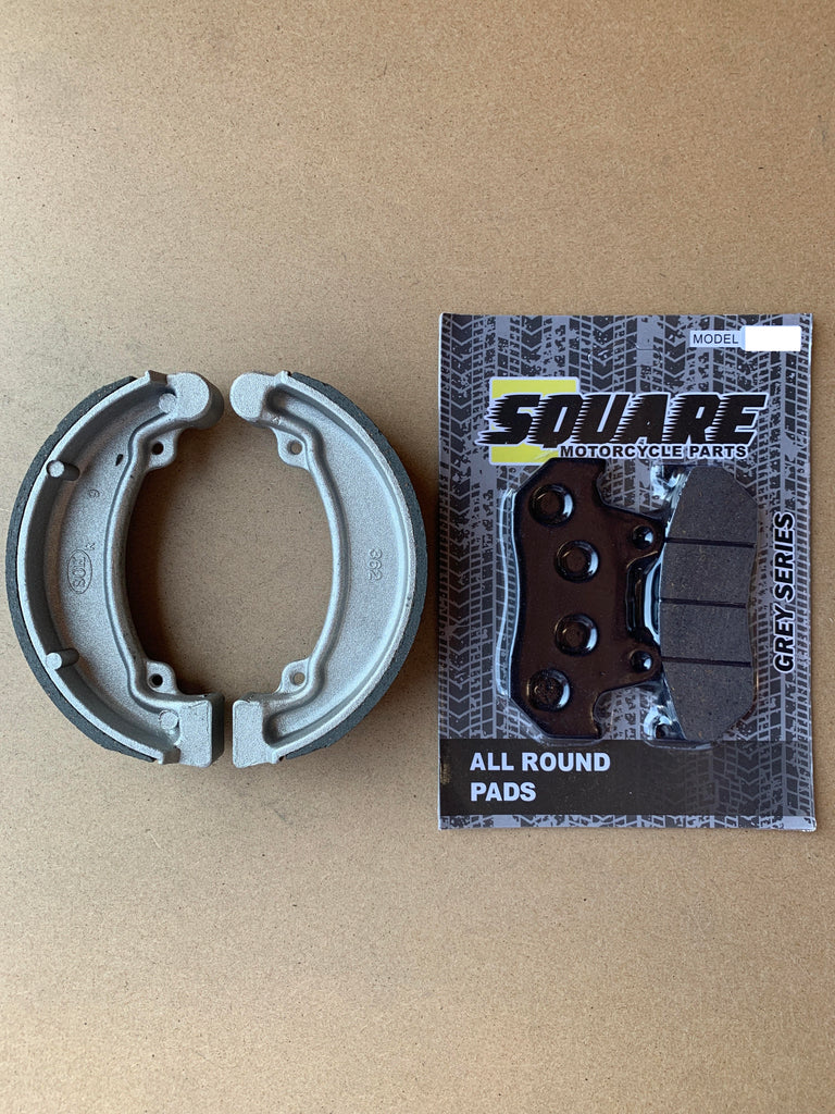 Dieser Satz vorderer Bremsbeläge und hinterer Bremstrommelbacken wurde als Ersatz für die Originalbremssätze einer Honda CB125 für die oben gezeigten Baujahre und Modelle hergestellt.