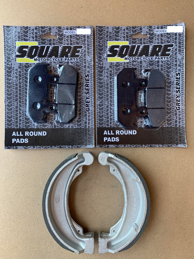 Dieser Satz vorderer Bremsbeläge und hinterer Bremstrommelbacken wurde als Ersatz für die Originalbremssätze einer Honda CBR250 für die oben gezeigten Baujahre und Modelle hergestellt.