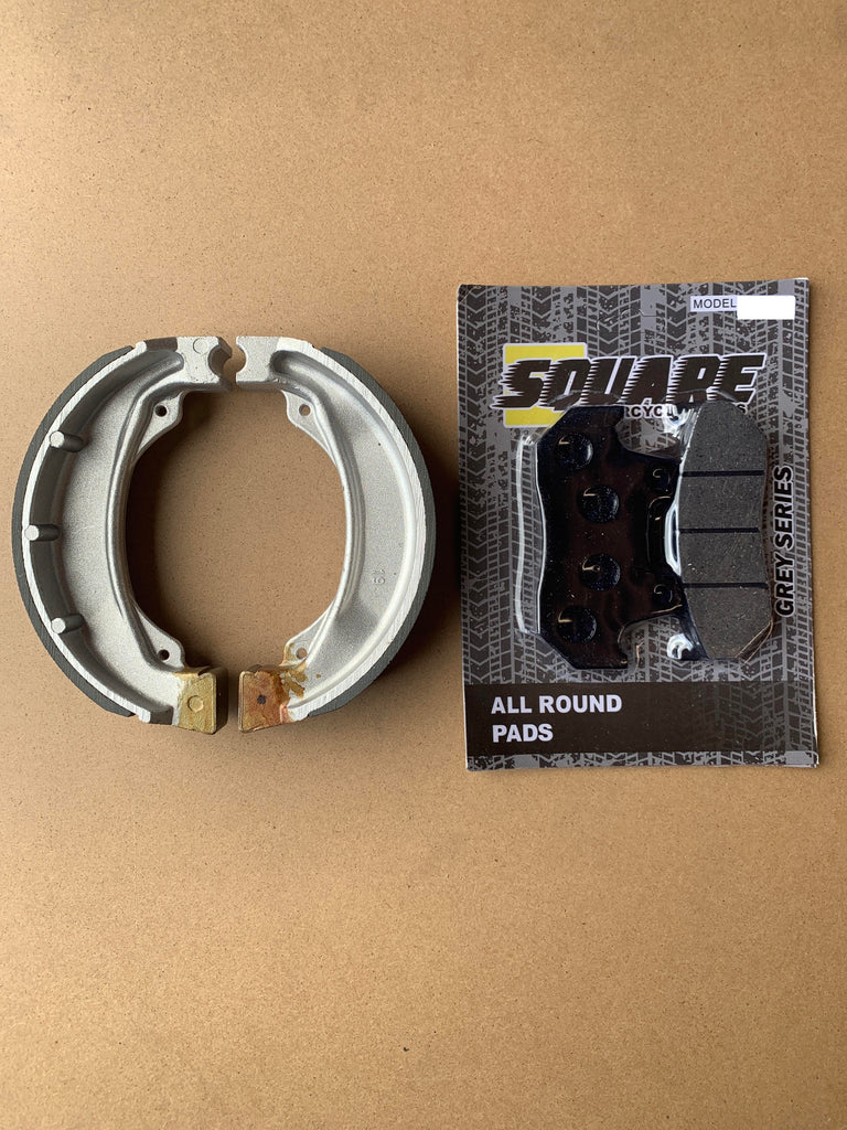 Dieser Satz vorderer Bremsbeläge und hinterer Bremstrommelbacken wurde als Ersatz für die Originalbremssätze eines Honda XBR500 für die oben gezeigten Baujahre und Modelle hergestellt.