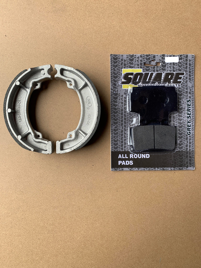 Dieser Satz vorderer Bremsbeläge und hinterer Bremstrommelbacken wurde als Ersatz für die Originalbremssätze einer Yamaha RD125 für die oben gezeigten Baujahre und Modelle hergestellt.