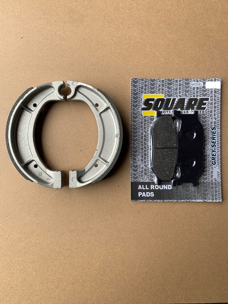 Dieser Satz vorderer Bremsbeläge und hinterer Bremstrommelbacken wurde als Ersatz für die Originalbremssätze eines Yamaha SR400 für die oben gezeigten Baujahre und Modelle hergestellt.