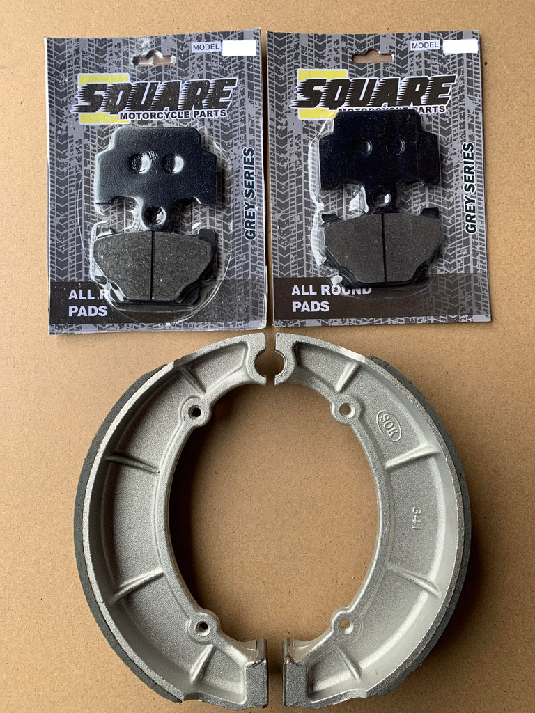 Dieser Satz vorderer Bremsbeläge und hinterer Bremstrommelbacken wurde als Ersatz für die Originalbremssätze einer Yamaha XJ750 für die oben gezeigten Baujahre und Modelle hergestellt.