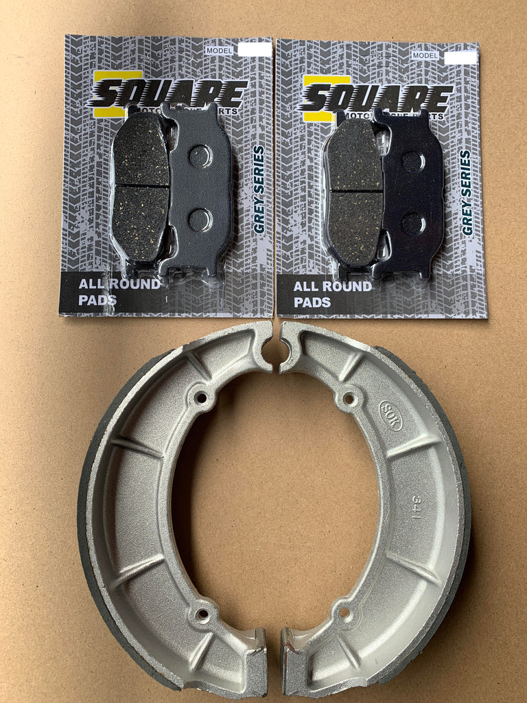 Dieser Satz vorderer Bremsbeläge und hinterer Bremstrommelbacken wurde als Ersatz für die Originalbremssätze einer Yamaha XV750 für die oben gezeigten Baujahre und Modelle hergestellt.