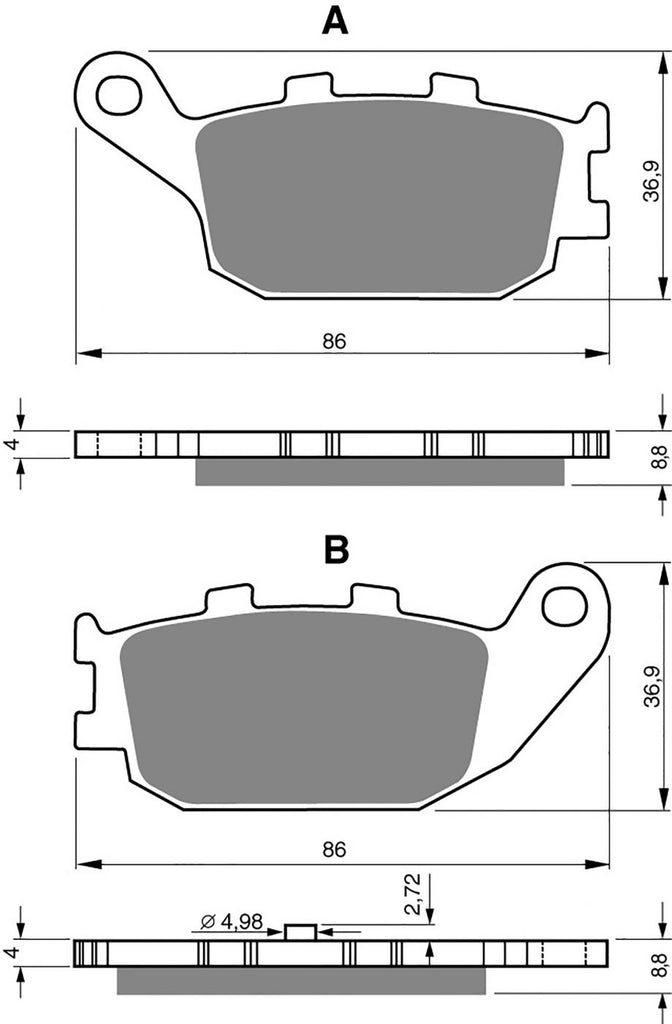 Die AD-Mischung sorgt für geringe Abriebfestigkeit an der Bremsscheibe und ein deutlich leiseres Bremsverhalten dank des Verbundmaterials. Die Bremsbeläge bieten unter allen Bedingungen und auf jedem Terrain eine hervorragende Leistung und stellen eine großartige Allround-Serie dar.