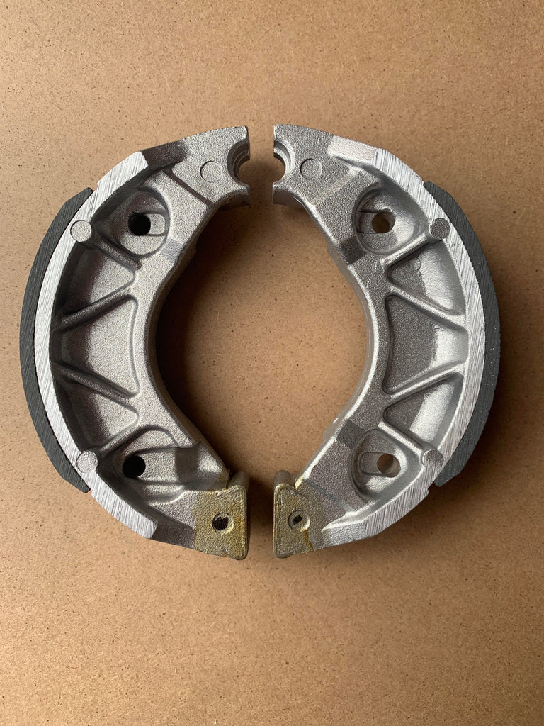 Dieser Satz Bremstrommelbacken wurde hergestellt, um den originalen hinteren Satz Bremstrommelbacken einer Yamaha XF50 zu ersetzen. für die oben gezeigten Baujahre und Modelle.